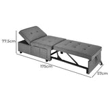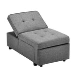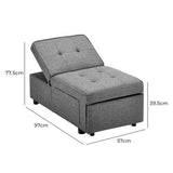 Features: Materials: eucalyptus wood and steel frame, linen-look polyester upholstery, high-density foam padding, serpentine springs, polypropylene legs Includes: 1 x sofa bed, 1 x assembly manual This single sofa bed can also function as a fully flat bed, as a handy ottoman or as a luxurious lounger to suit the moments Upholstered in a premium linen-look fabric Designed to last even with robust use Equipped with six adjustable positions for the backrest, you can turn your sofa bed into the best seat in the house for watching TV, reading, or keeping up with your social media, or nestle it down for relaxation, napping or sleeping Its convertible feature is certainly much appreciated in every way Built to exacting standards with a solid eucalyptus wood and steel frame, thick-cushioned seats with strong serpentine springs and augmented with sturdy plastic legs to add strength, stability and durability to its streamlined structure The artisanship is meticulous and the tufting and stitching is first class with near flawless finishing and close attention to details