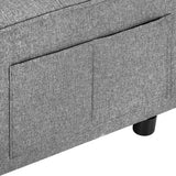 Features Size: Single Bed Type: Pull Out Sofa Bed Consumer Advice: We strongly recommend using suitable floor protection to prevent damage to hard surface floors (e.g. a non-slip rug or non-slip furniture feet protectors). Regular checks to ensure that fixings are tight and the supporting legs remain securely in place is also required. Frame Material: Solid Wood; MetalFrame Material Details: Eucalyptus wood, steel Primary Colour: Light Grey Legs Included: YesLegs Material: Polypropylene Upholstery Material: PolyesterUpholstery Material Details: Linen-look polyester Seat Padding Material: High-density foam Back Padding Material: High-density foam Mattress Included: No Seat Suspension Type: SpringsSuspension Details: Serpentine springs Seat Cushion(s) Removable: No Back Cushion(s) Removable: No Removable Cushion Cover: No Machine Washable Cushion Cover: No Trundle Included: No Storage Included: Yes Seating Capacity: 1 Comfort Level: Medium Recommended Weight Capacity: 150 Kilograms Additional Floor Protectors Advised for Wooden Floors: No Castors Included: Yes Pattern: Solid Box Contents: 1 x sofa bed, 1 x assembly manual Care Instructions: Wipe with a clean, dry cloth Assembly Assembly Required: YesType of Assembly: MinimalRecommended Persons Required for Assembly: 1Assembly Details: Assembly instructions included with the product Limited warranty Product Warranty: 2 Years