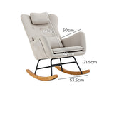 Features: Materials: 100% polyester upholstery, powder-coated steel frame & legs, rubberwood base, high-density foam padding Includes: 1 x rocking chair, 1 x headrest pillow, 1 x backrest pillow Can be used as a nursing chair Reinforced steel frame Faux linen look Recommended to be used on carpet Product Details: Recommended Weight Capacity: 95 Kilograms