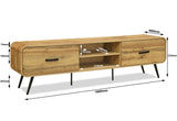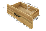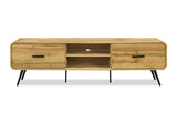 The black metal legs and handles add a touch of modern contrast to the natural wood-colour tones.