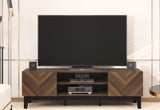 Product Code: 839440001 The Woodard Entertainment Unit in Walnut is a stylish and functional addition to any living space. Featuring a striking chevron pattern, this unit offers a modern yet timeless appeal. With two doors and open shelves, it provides ample storage for media devices, books, and décor. The walnut finish adds warmth, while cable management holes ensure a clutter-free setup. Perfect for contemporary or classic interiors, this entertainment unit combines elegance with practicality. Click here to view Furniture Safety Information Ready To Assemble This product comes ready to assemble. WARNING! Children have died from furniture toppling over. Always secure this furniture with an anchor device. Never allow children to stand, climb or hang on drawers, doors, or shelves. Never open more than one drawer at a time. Always place heavy items down low. Never place a television on any furniture other than an entertainment unit. For entertainment units, always secure your television with an anchor device. For more information, visit Home | ACCC Product Safety or click here to view furniture safety information.