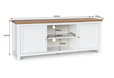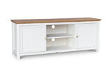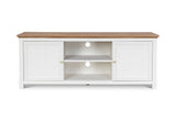 The Worcester Entertainment Unit makes lounging in style easy. With a crisp white finish and natural top, it blends modern freshness with a welcoming feel. Two doors hide away movies, remotes, or cables, while two open shelves provide the perfect spot for consoles or décor. The wide surface easily holds your TV, leaving room for a little extra styling on the side. A blend of storage and display, the Worcester Entertainment Unit keeps your living room neat and full of charm.